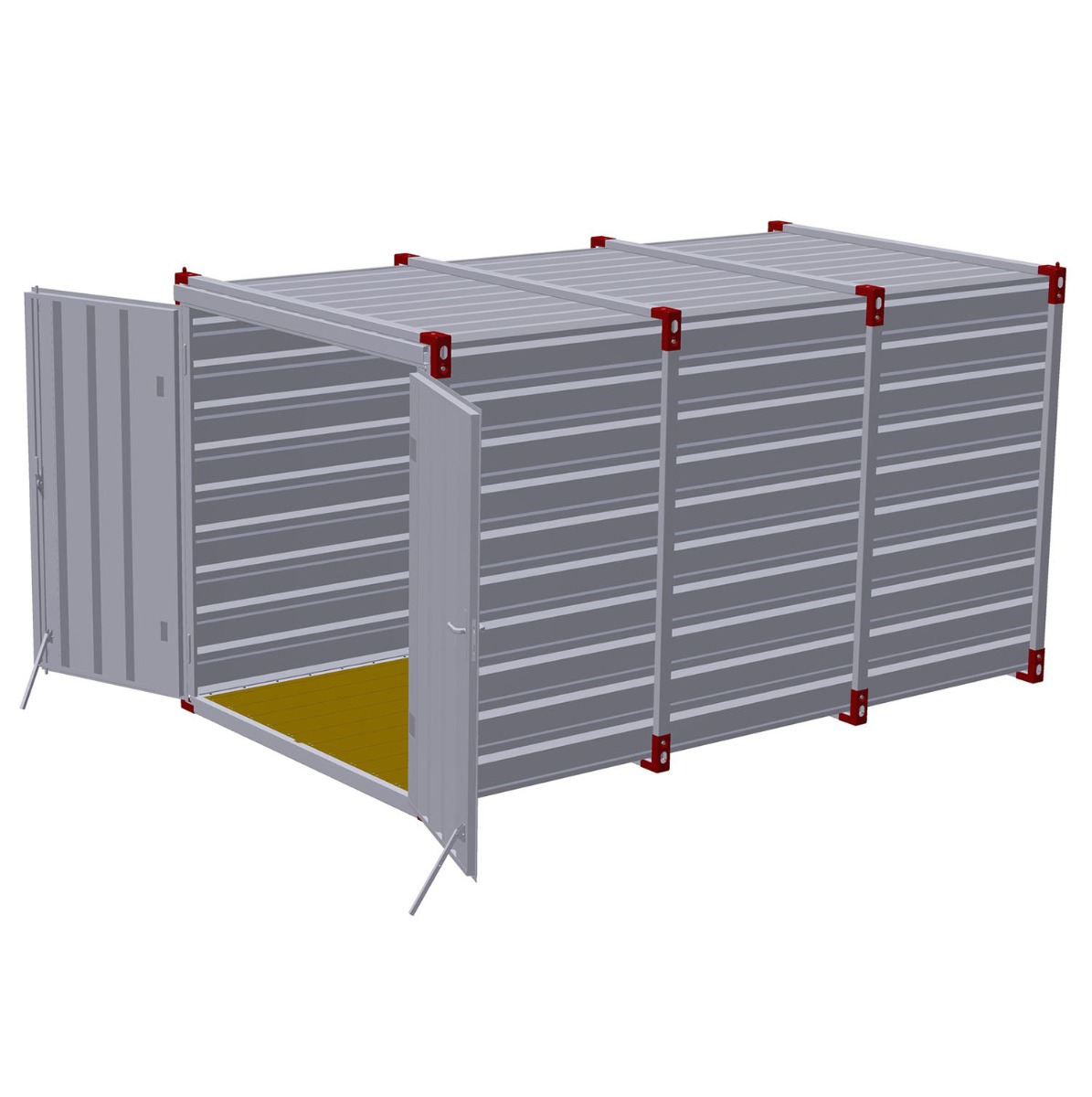 Container cu usa dubla in partea din fata, 4m x 2mContainerul este realizat din foi de oțel zincat cu grosimea de 0,75 mm, nituri de 0,4 mmProfilele de susținere sunt realizate din foi de oțel zincat cu grosimea de 2,0 mm.Pardoseala este din scânduri din lemn cu grosimea de 35 mm (canelura limbii sistemului).Recipientul asamblabil poate fi demontat în poziția de transport pentru a reduce costul transportului.Containerul are ușă dublă cu mâner, încuietoare și stofoare în partea frontală.Îmbunătățirea profilului când ușa este complet deschisă este de 1930 x 1930 mm.