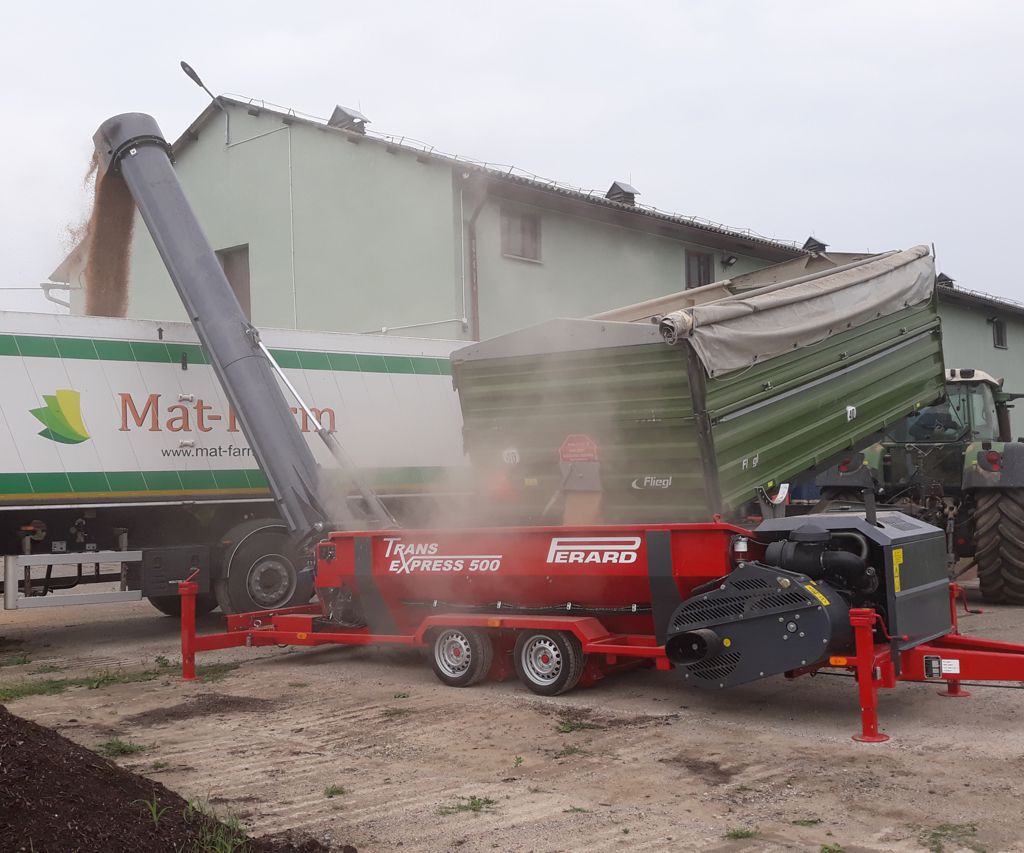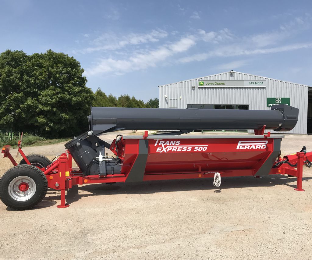 Perard Trans-eXpress 500 este un buncăr mobil pentru transfer de materiale agricol, proiectat pentru a facilita încărcarea unui camion folosind o remorcă simplă sau alte containere de materiale. Sistemul funcționează prin intermediul unui șnec de transfer de Ø 500 mm, cu un debit mediu foarte ridicat, ceea ce permite manipularea rapidă a fluxului de material fără pierderi de timp.