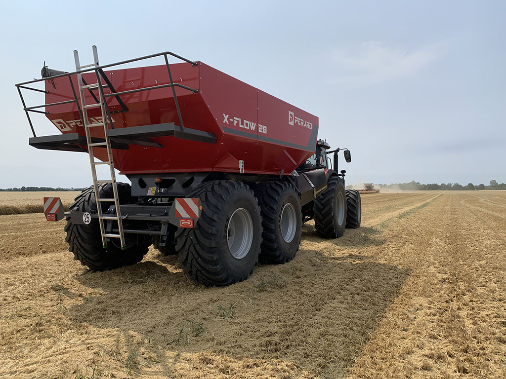 Perard X-Flow 28 & 34 sunt remorci de transbordare concepute pentru ferme medii care doresc un echilibru între capacitate, eficiență și manevrabilitate. Aceste remorci permit transferul rapid și controlat al cerealelor sau altor materiale granulate din combina agricolă către remorcă, camion sau spații de depozitare, fără a opri combina, ceea ce optimizează semnificativ campania de recoltare. (perard.fr)