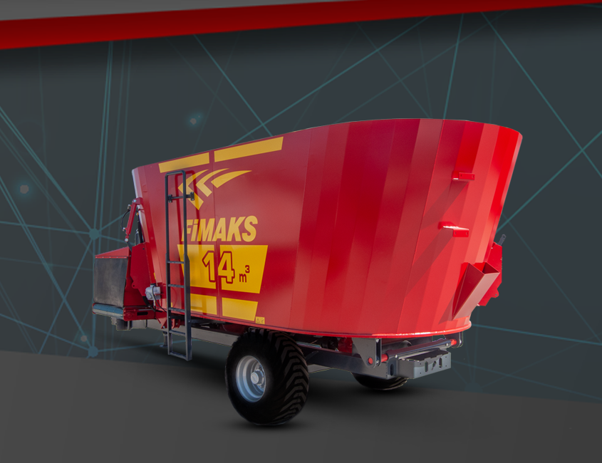 Remorca tehnologica verticala,14 m3, cu descarcare frontala si dublu burghiu, Fimaks model FMV 14F
